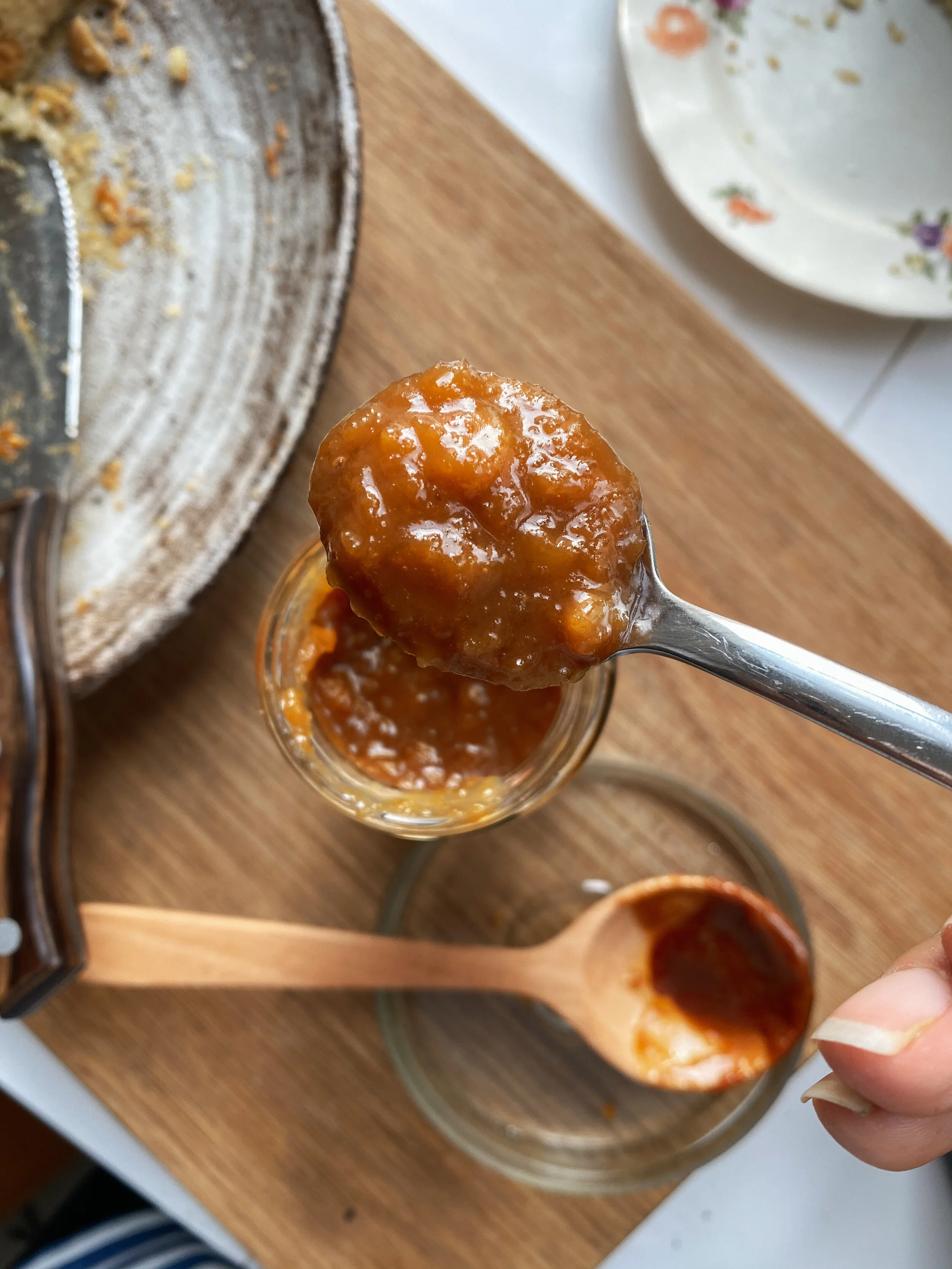 6. Sekoita omenasose lämpimän karamellin joukkoon ja säilytä kannellisessa lasipurkissa jääkaapissa. (säilyy n. viikon)